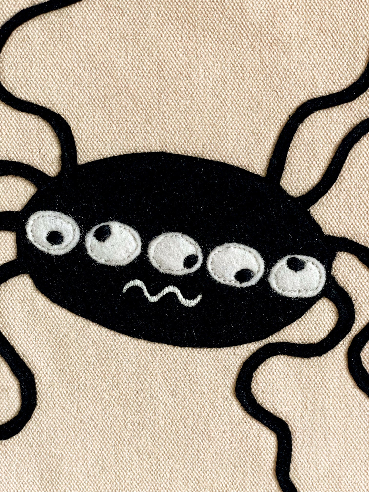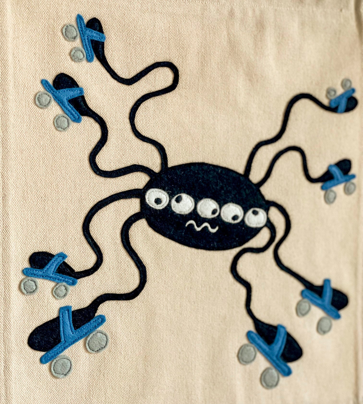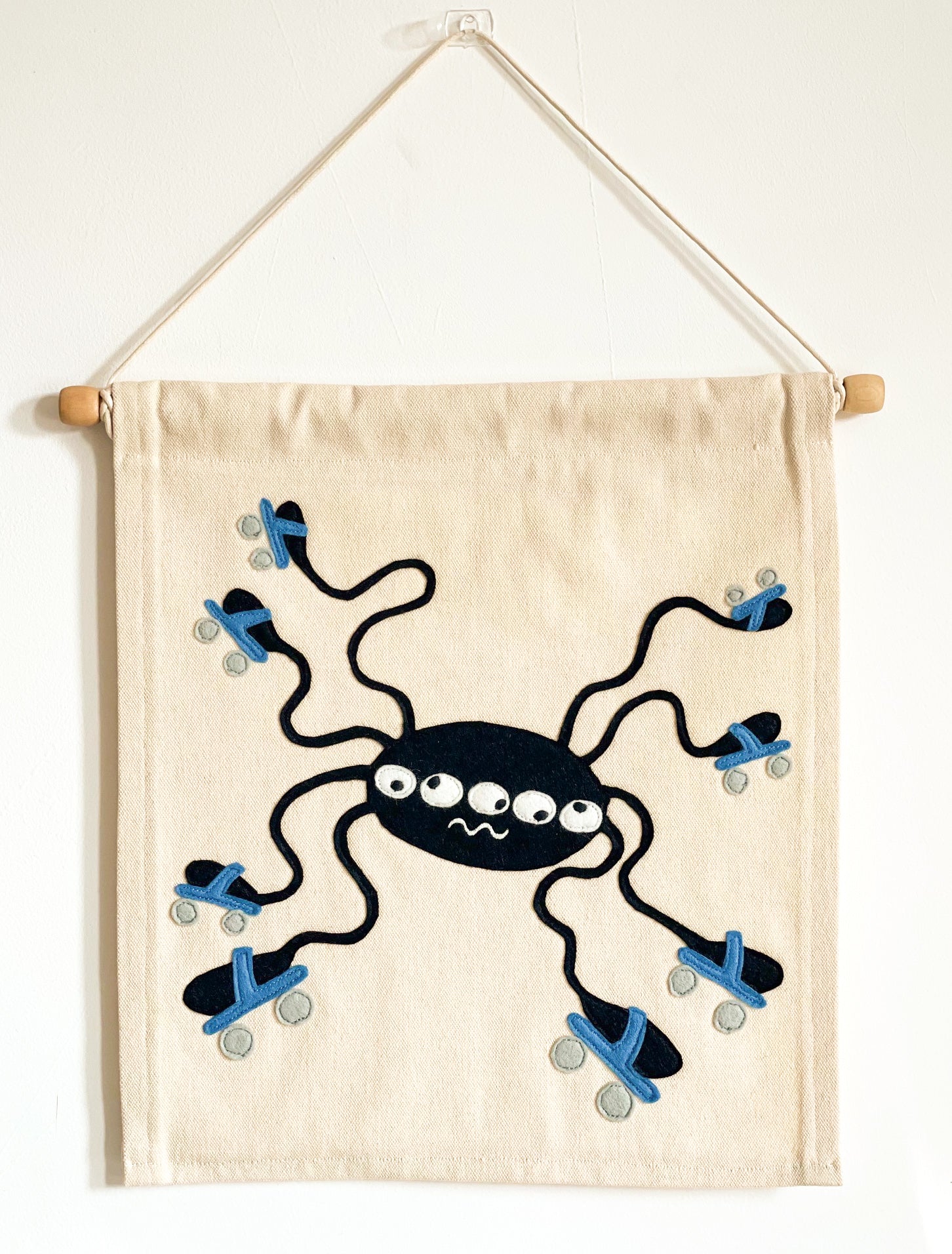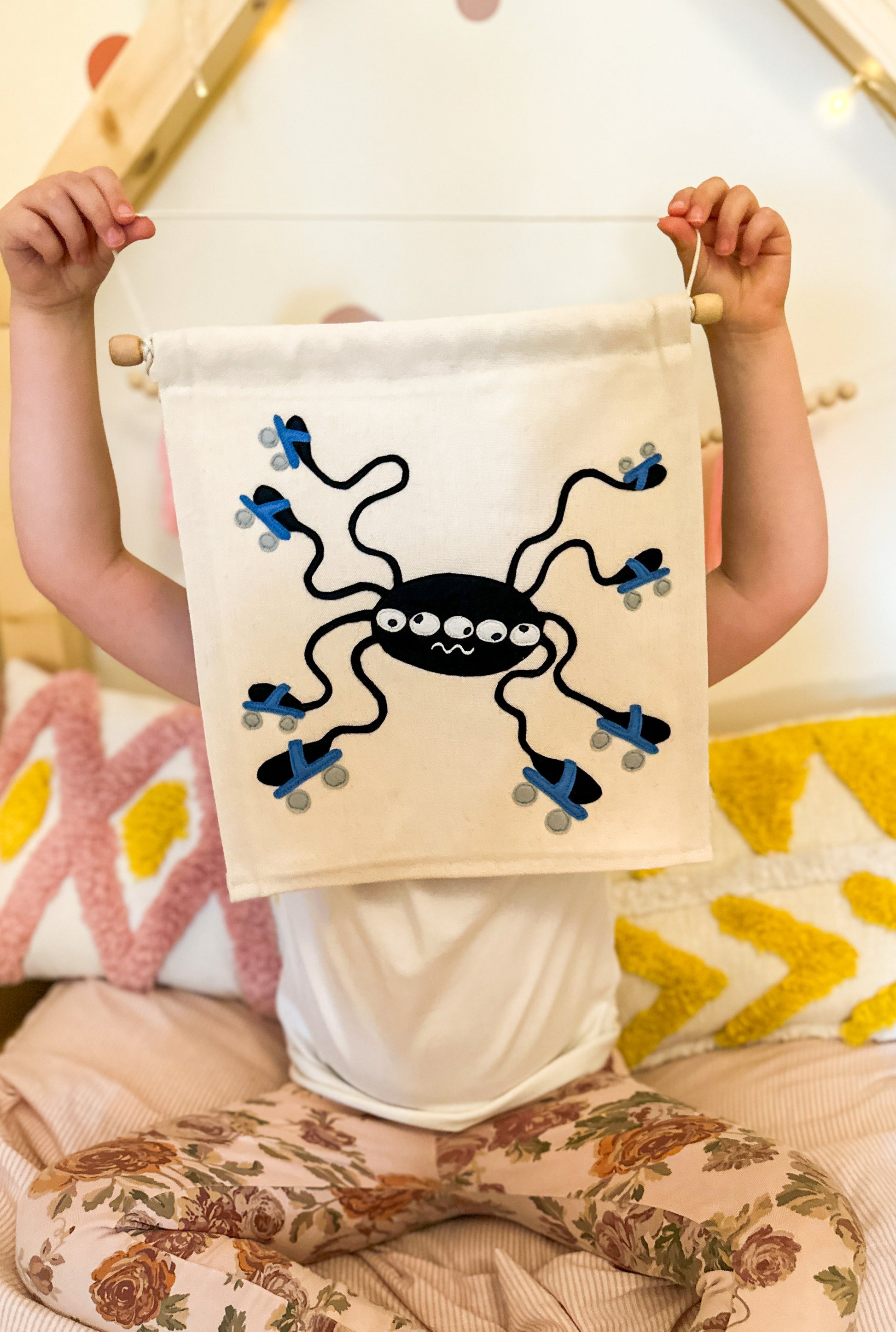 Transform your child's bedroom into a magical wonderland with our handmade Wiggles spider wallhanging. Featuring wiggly legs and many roller skates, this decor is made with premium wool and organic washed canvas for a soft and tactile feel. Ethically crafted and thoughtfully designed, add a unique touch to your child's space. Perfect for bedroom walls or doors, with personalisation options too, Wiggles makes the perfect gift.